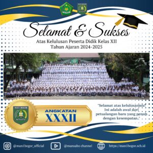 Hilman Muksin Hilman Muksin S.Pd Penulis adalah staf Humas MAN 1 Bogor 96 Artikel Dipublikasikan Featured 14 May 2025 PENGUATAN PROGRAM 9 K, MANSABO APRESIASI KELAS TERBERSIH Featured 8 May 2025 SEDERHANA PENUH MAKNA: PERPISAHAN PESERTA DIDIK KELAS XII MANSABO Featured 5 May 2025 PRAKATA KELULUSAN MAN 1 BOGOR TAHUN PELAJARAN 2024/2025 Kampus Karadenan 3 May 2025 DAFTAR NAMA PESERTA JALUR REGULER LOLOS VERIFIKASI BERKAS PPDBM 2025/2026 Kampus Karadenan 24 April 2025 Pengumuman Jadwal Verifikasi PPDBM MAN 1 BOGOR 2025/2026 Featured 22 April 2025 MANSABO HIJAUKAN INDONESIA, GERAKAN TANAM 1 JUTA POHON MATOA PERINGATI HARI BUMI KE-55 Featured 22 April 2025 HARI KARTINI: SEMANGAT EMANSIPASI DAN KREATIVITAS MENYALA DI MAN 1 BOGOR Tak Berkategori 21 April 2025 PENGUMUMAN Kampus Karadenan 21 April 2025 JADWAL SESI WAWANCARA DAN TES BTQ PPDBM JALUR AFIRMASI DAN PRESTASI « 1 … 4 5 6 7 8 … 11 »