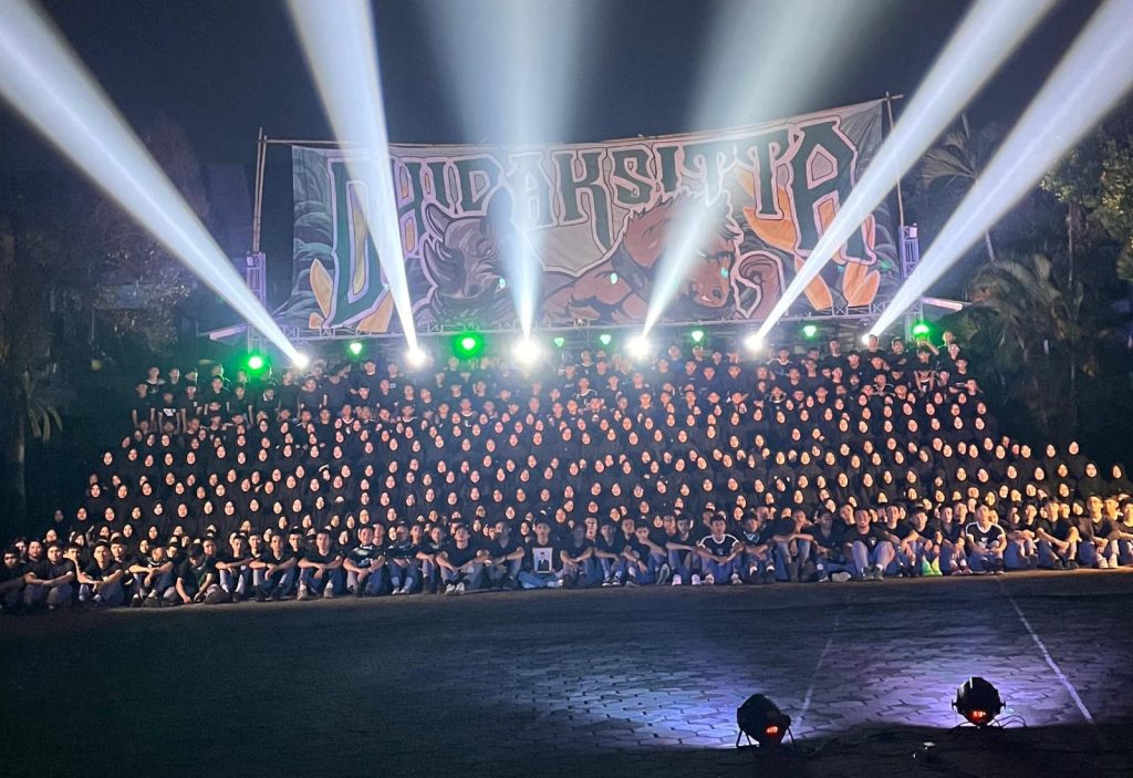 Setelah membentuk angka angkatan, para siswa duduk berbaris rapi dan bertingkat, menciptakan formasi yang tertata dengan baik. Hingga waktu sore menjelang petang, awan gelap mulai menaungi area kegiatan, menambah nuansa reflektif dan khusyuk. Suasana tersebut semakin memperkuat makna kebersamaan dan kesiapan siswa menghadapi masa depan.